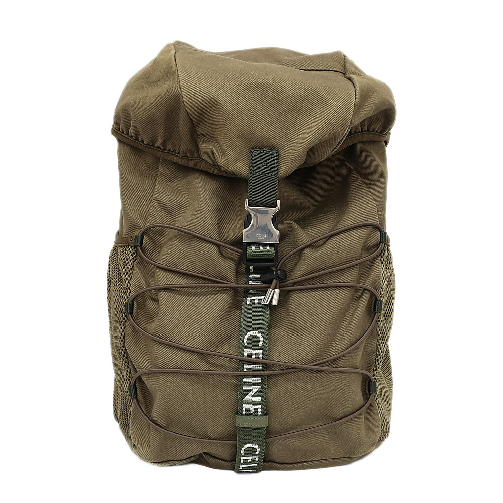 - 【天白】セリーヌ ミディアムトレッキング バックパック リュック カーキグリーン コットン リュックサック メンズ 鞄