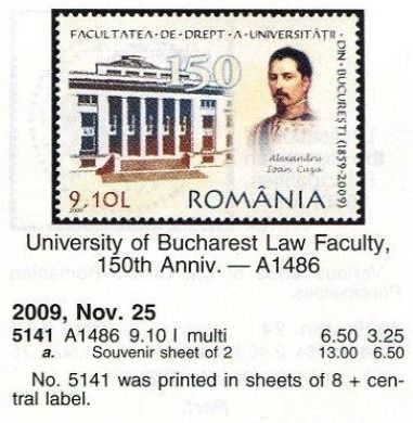- (ルーマニア)2009年ブカレスト大学小型シート、スコット評価13ドル(海外より発送、説明欄参照)