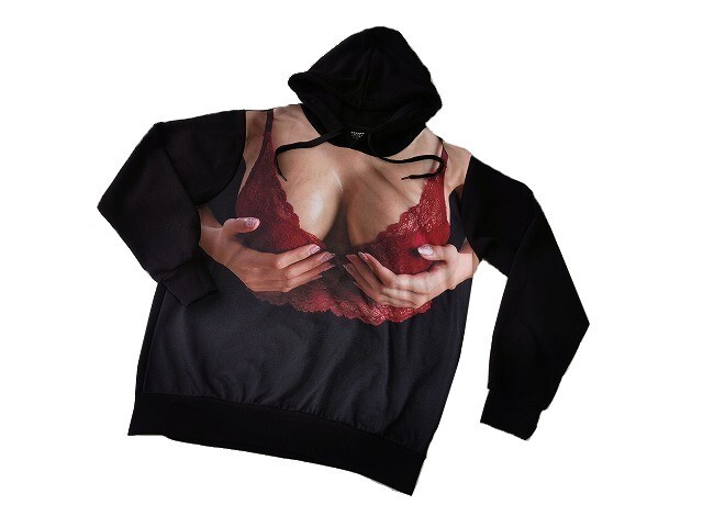 - 【新品】リアル 手ブラ パーカー 長袖【L】黒/ブラック◆プリントトップス 男性用