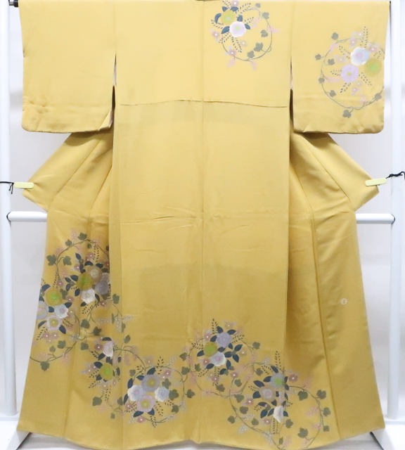 > 《古美術京松》リサイクル着物 訪問着 作家物 花文 金彩 正絹 身丈約162cm 裄丈約66cm kyo7z08-973