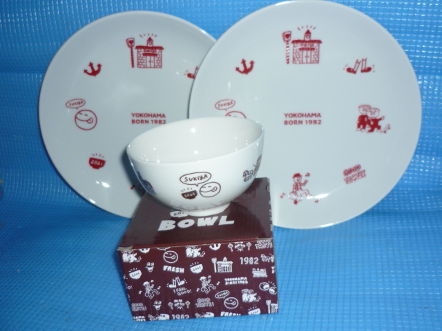 - E★未使用・非売品★すき家SUKIYAオリジナルお茶碗とすき家SMILE BOX 特製プレート皿x2枚