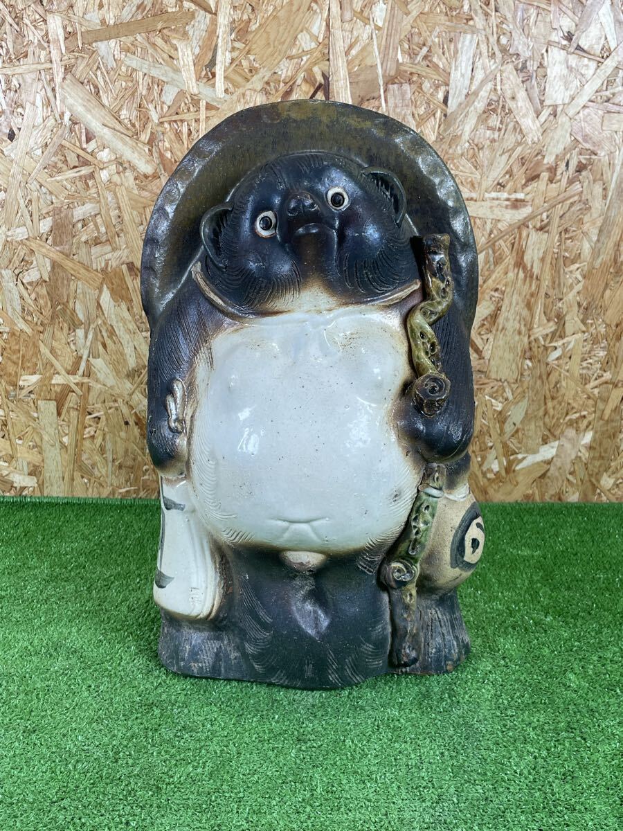 - 10B16 置物 たぬき 縁起物 信楽焼? タヌキ 狸 陶器 インテリア 商売繁盛 オブジェ 高さ約40cm 中古品