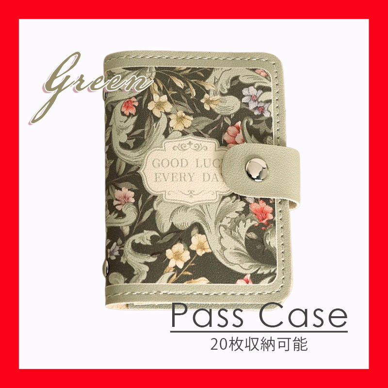- カードケース グリーン 緑色 カードホルダー コンパクト プレゼント お花 花柄 カード入れ 収納 片付け 財布 スッキリ