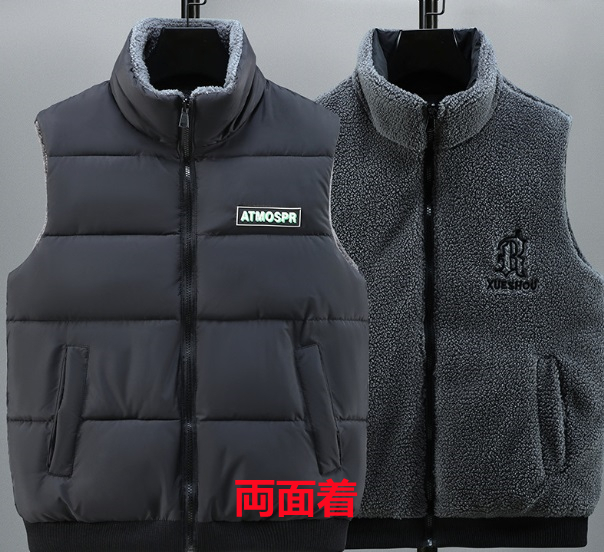 - 新販売 両面着 ムートンベスト 中綿ベスト ワークベスト 男女兼用 アウター 暖かい カジュアル グレー/2XL
