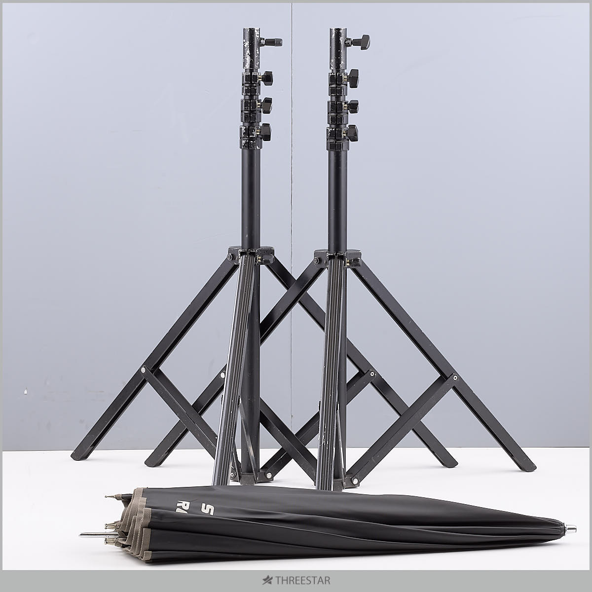 > SUNSTAR STROBO サンスターストロボ ライトスタンド 2本/アンブレラ 1本 セット 実用中古 【6】