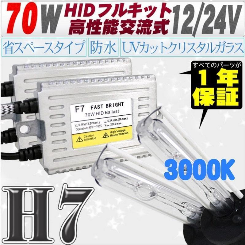 - 高性能 薄型HIDキット 70W H7 リレー付 3000K 12V/24V 【交流式バラスト&クリスタルガラスバーナー】