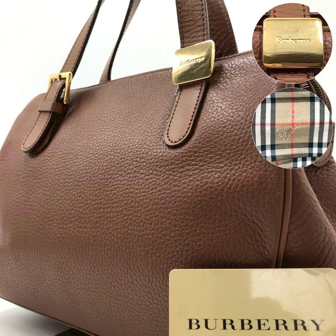 > 定価10万/美品●バーバリー BURBERRY トートバッグ ハンドバック ノバチェック ホース レザー ブラウン メンズ レディース ビジネス 書類鞄