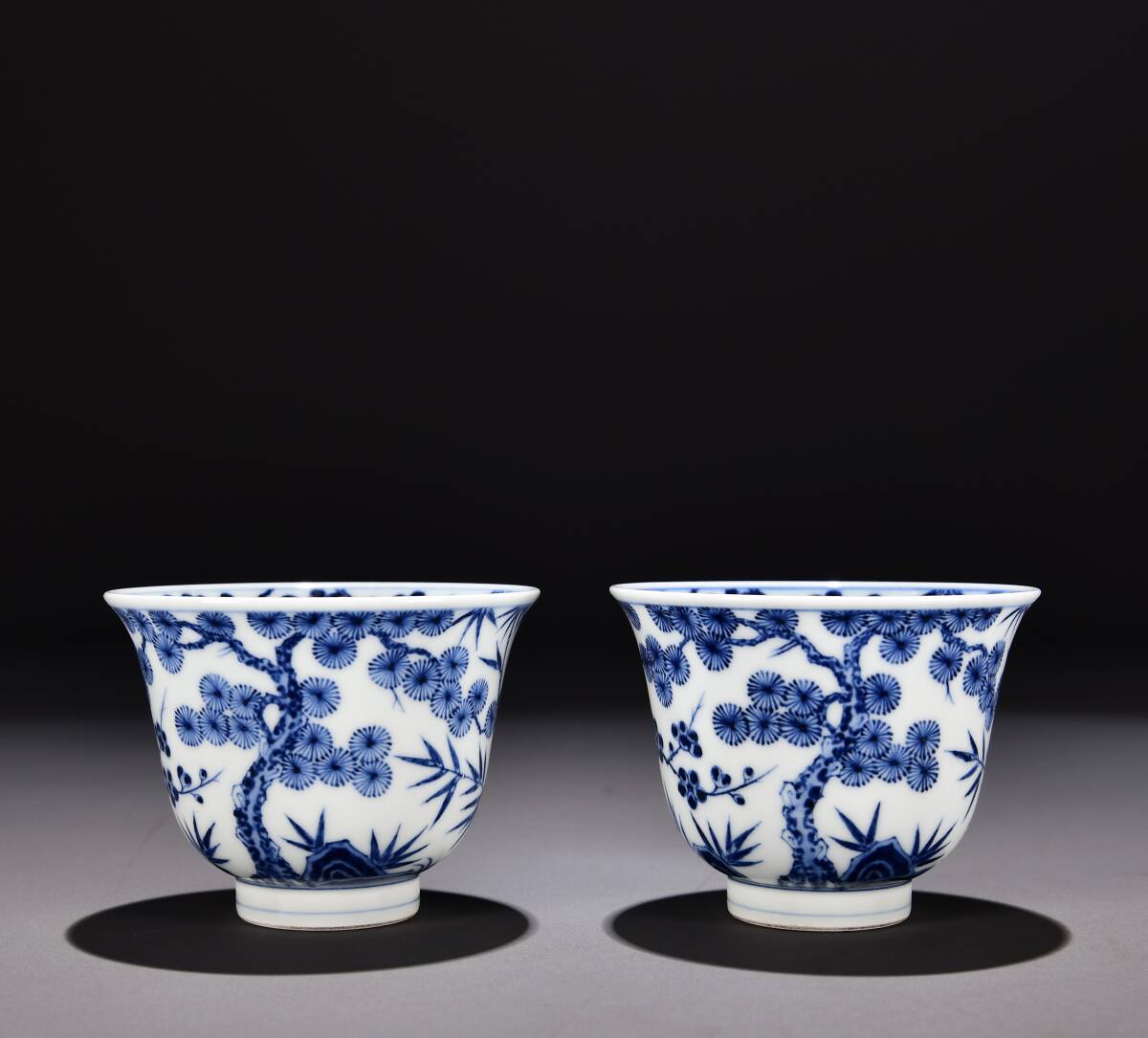 - 【超珍館蔵】明 宣德年制款 古陶瓷品 青花 松竹梅紋 供杯 陶藝 古賞物 古董品 古美術品 時代物 旧家蔵出 稀少珍蔵品