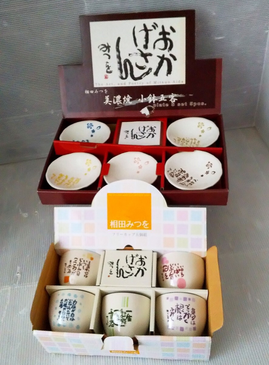 - 相田みつを 美濃焼 食器 まとめて 小鉢五客 フリーカップ5個組 陶器 和食器