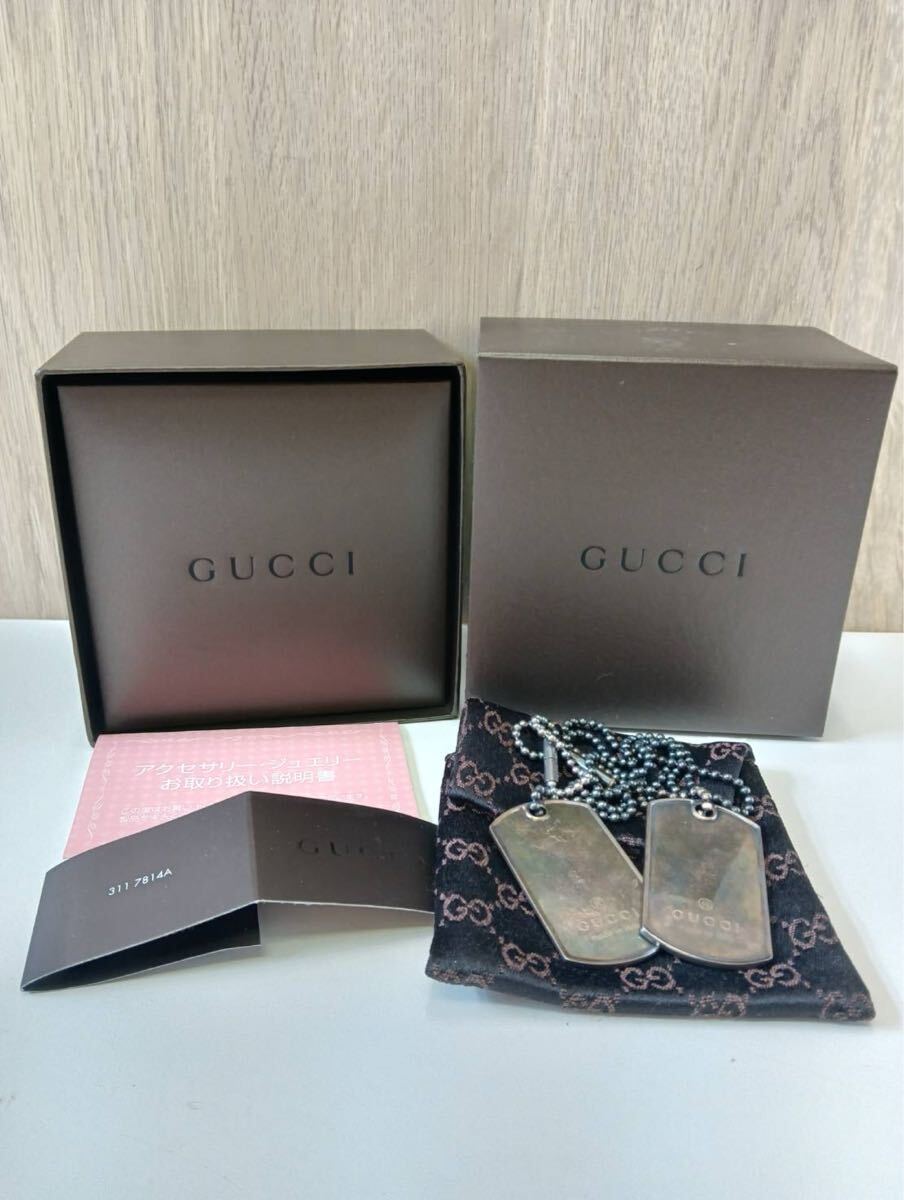 - 【中古品】GUCCIグッチ ドッグタグ ダブルプレート ボールチェーンネックレス ペンダント シルバー925 プレート アクセサリー箱付き 現状品