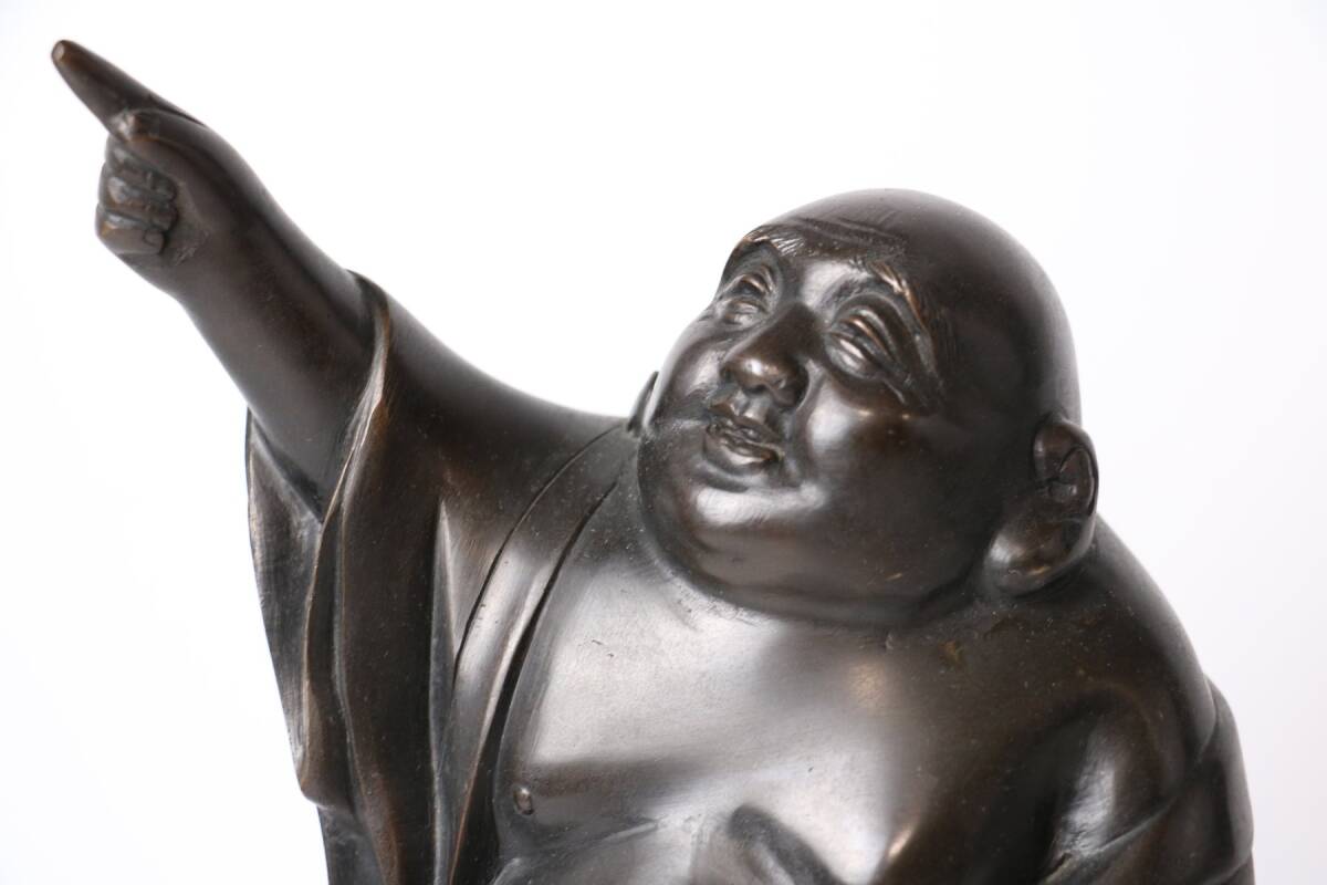 - 唐銅 月見布袋尊像 置物 骨董 人物像 古美術 ブロンズ像 時代物