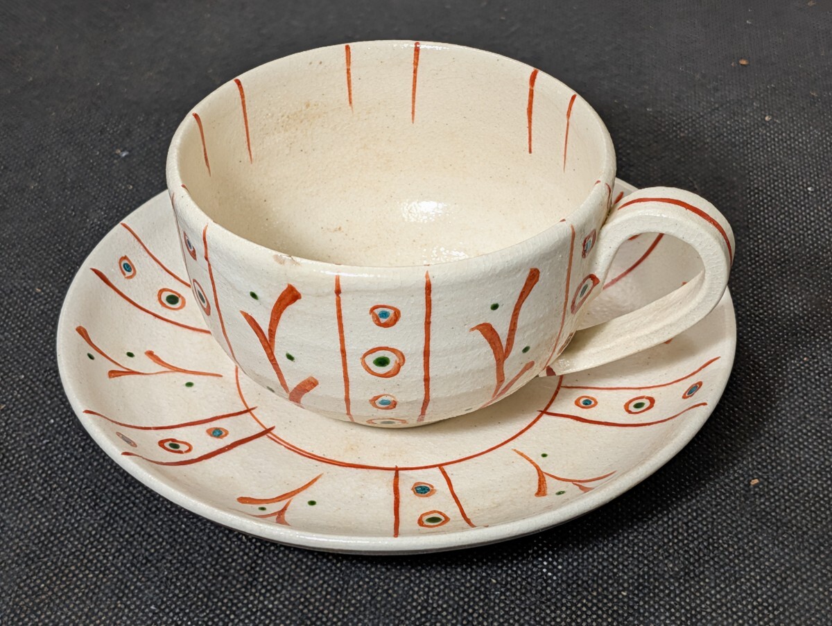 - 五春窯 赤絵碗皿 未使用 〔まとめて取引がお得⇒追加送料無し〕/瀬戸焼/カップ&ソーサー/和食器/陶磁器/