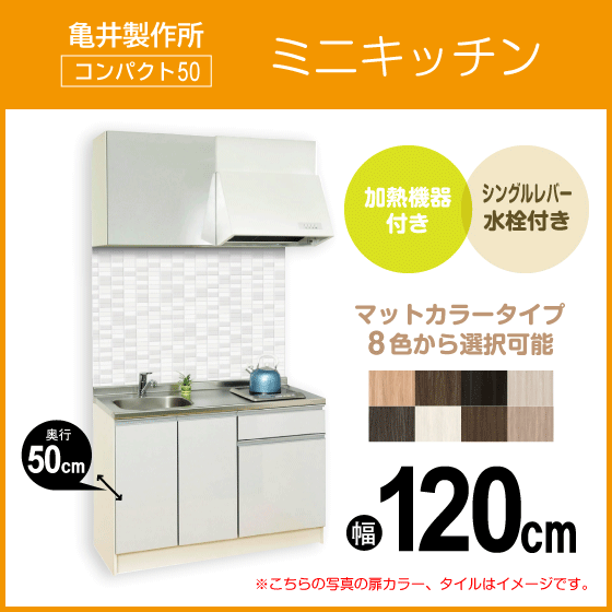 > ミニキッチン コンパクト50(扉カラー:マット) 間口120cm フルタイプ SS120FJTK2R,SS120FJTK2L 亀井製作所 1,200mm