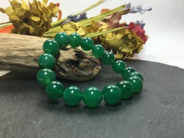 - パワーストーン ブレスレット 緑瑪瑙 12mm 天然石ブレス 開運 浄化 数珠ブレス メンズ 男性♪