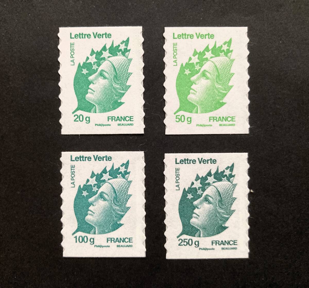 - 外国切手: フランス切手 「マリアンヌコイル・グリーンレター」 4種 未使用