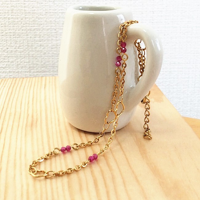 - 天然石 恋愛成就 魅力UP レッドスピネル カットビーズ ハート アンクレット