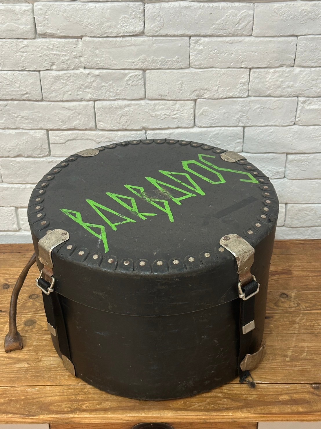 - 5284 ファイバーケース ビンテージ ボックス 円筒形 BARBADOS 収納 楽器ケース スネアドラムケース インテリア オブジェ アンティーク bff