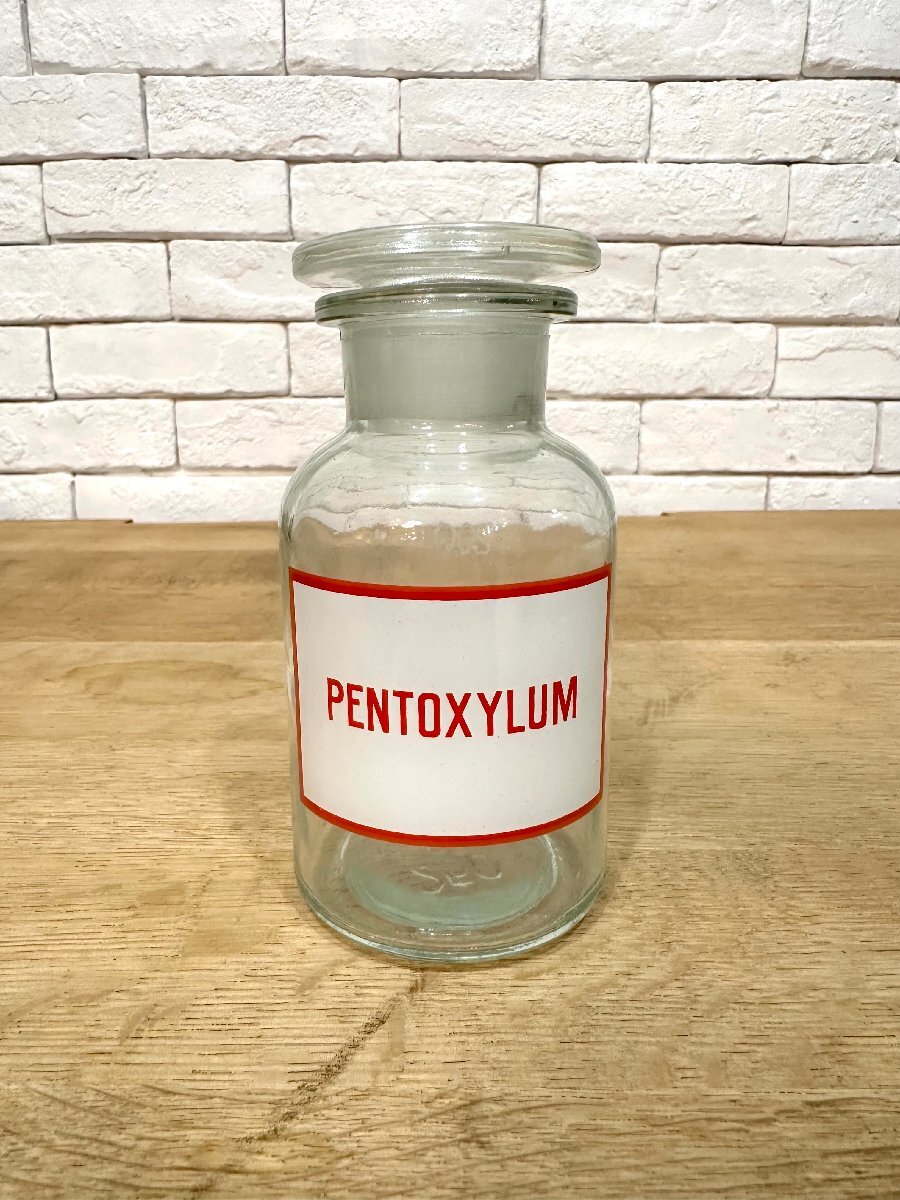 クリアガラスに、レッドカラーでPENTOXYLUMの文字がデザインされた商品です。