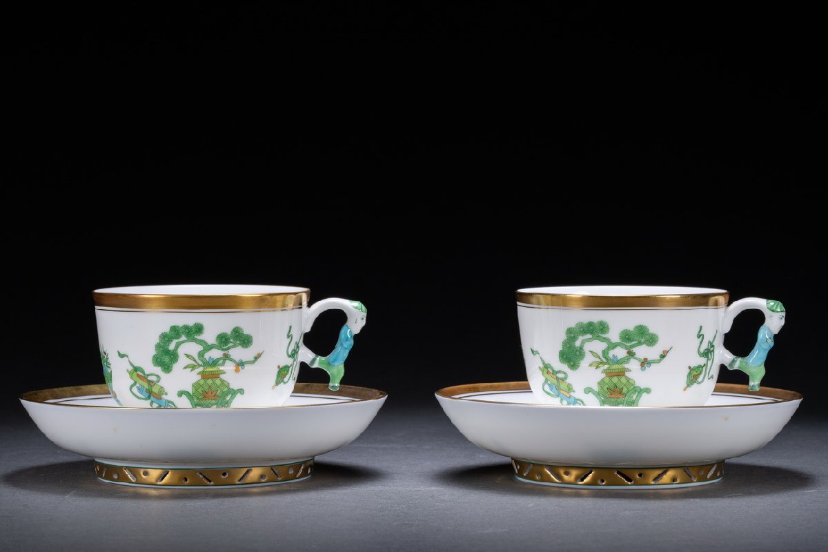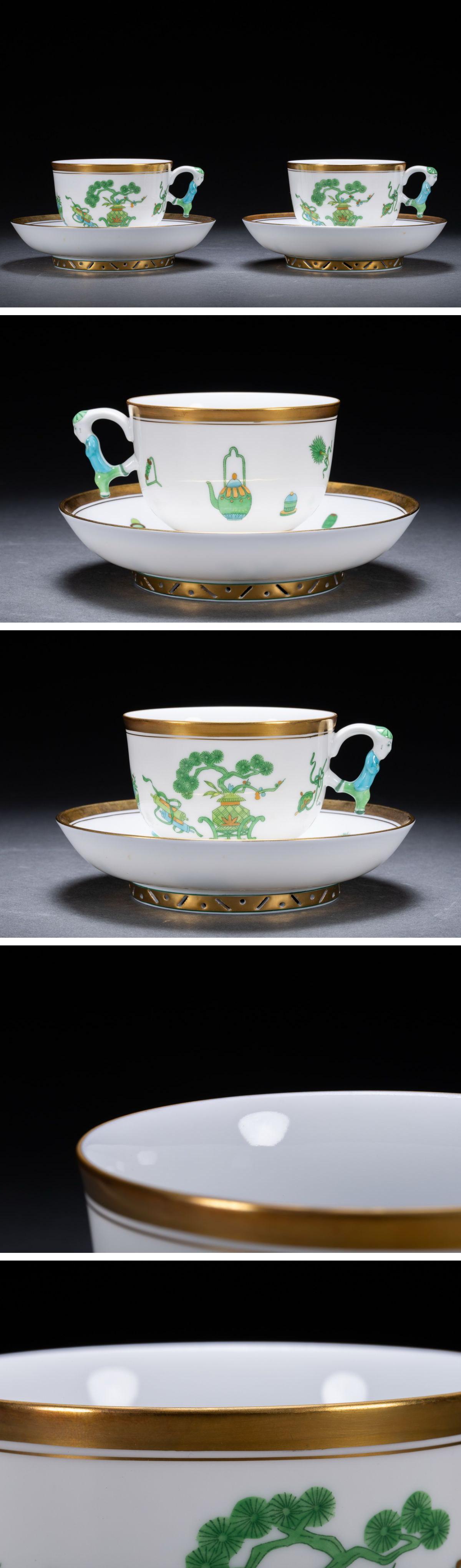 - 【雲錦】某有名オークション購入HEREND ヘレンド白磁 色絵花卉紋コーヒーカップセット 二客 極美品WK9-229