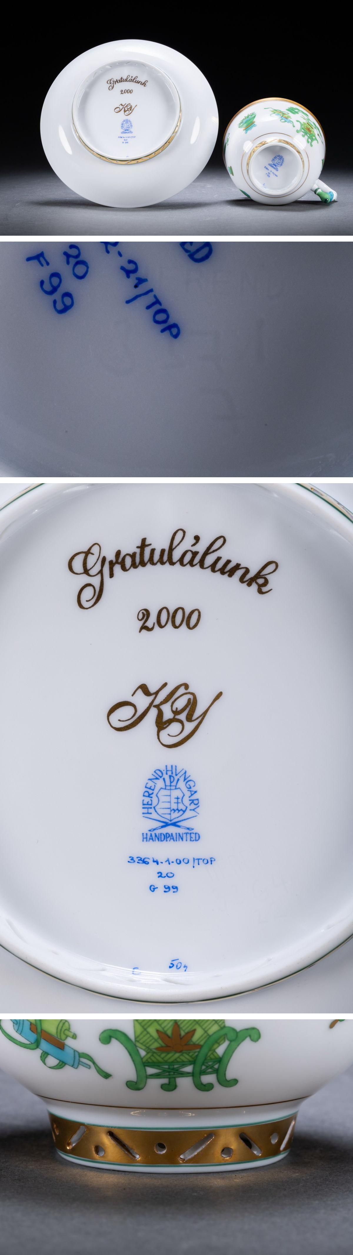 > 【雲錦】某有名オークション購入HEREND ヘレンド白磁 色絵花卉紋コーヒーカップセット 二客 極美品WK9-229