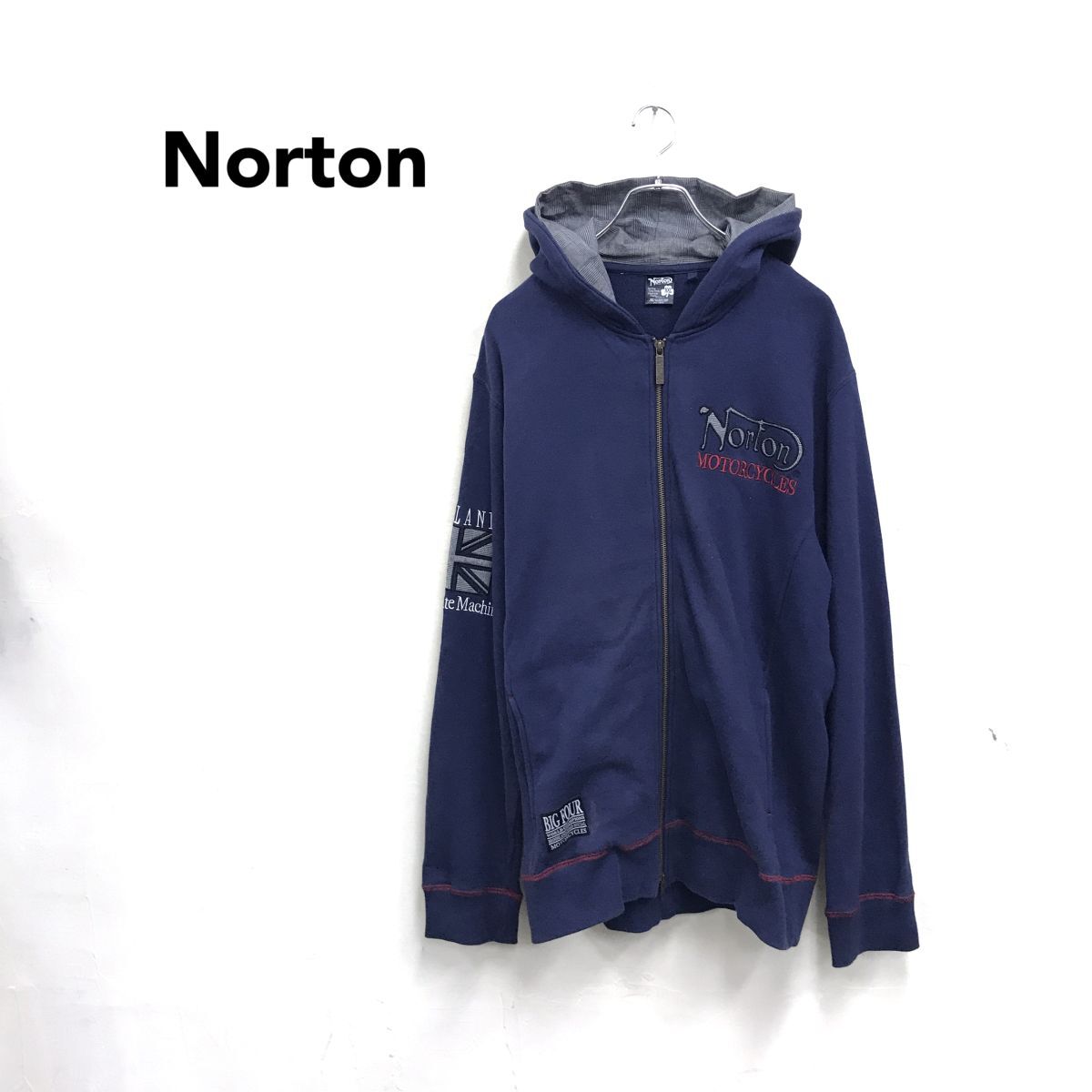 - 2O1219-Y◆Norton ノートン フルジップパーカー フード 重ね着風デザイン 刺繍ロゴ メンズ ビッグサイズ カジュアル◆sizeXXL ネイビー 綿