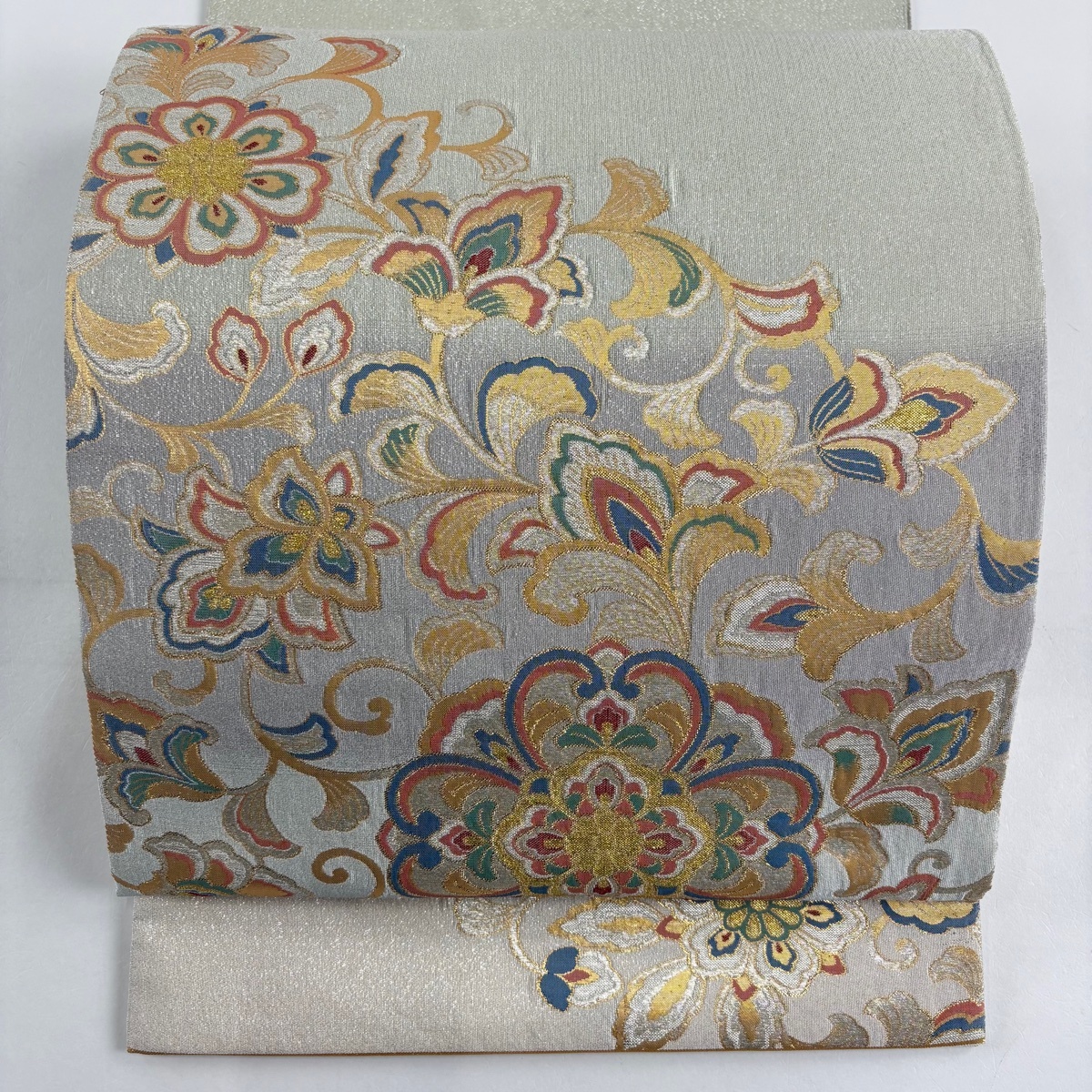 > 【美品】 袋帯 秀品 華文 華唐草 箔 灰色 お太鼓柄 正絹 【中古】