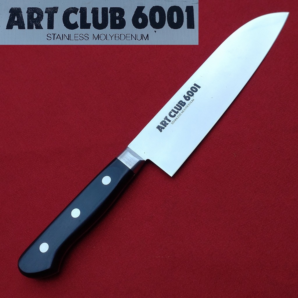 - 高級 御料理庖丁 万能包丁 ART CLUB 6001 関刀鍛冶の技 刃長約170㎜ 両刃 鍔付 洋包丁 三徳包丁 刃物 日本製 未使用保管品 【4642】【b】