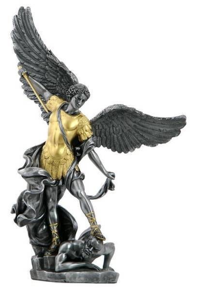 - ゴールド&ピューター色 悪魔を踏む、大天使ミカエル 守護天使エンジェル彫像 彫刻(輸入品)