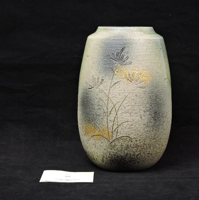 > 〔値下げ〕【未使用/長期保管品】信楽焼 花瓶 金彩 花入 全長約25cm 取扱説明書有 フラワーベース