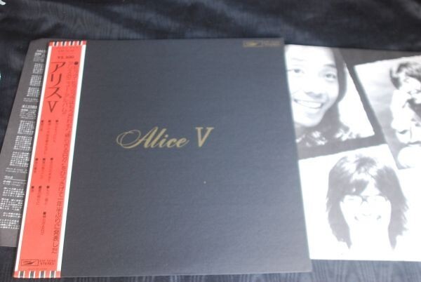 - q2046】レコード アリスⅤ LP アナログ 昭和 帯、歌詞カード付き。