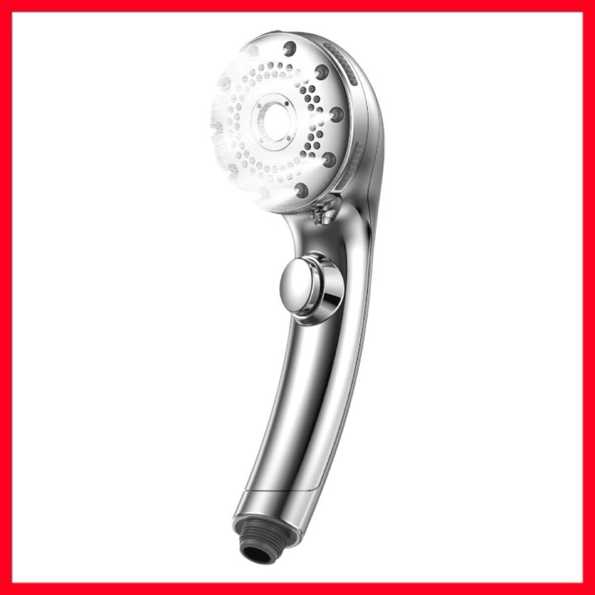 > Kungix シャワーヘッド マイクロナノバブル 5段階モード 止水ボタン付き ミストシャワー 極細水流 高洗浄 節水シャワーヘッド 高水圧(銀)
