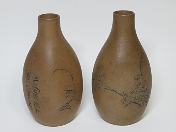 - 鉄画軒製 白泥徳利?◆旧家蔵出し 時代物 酒器 唐物 漢詩 中国美術