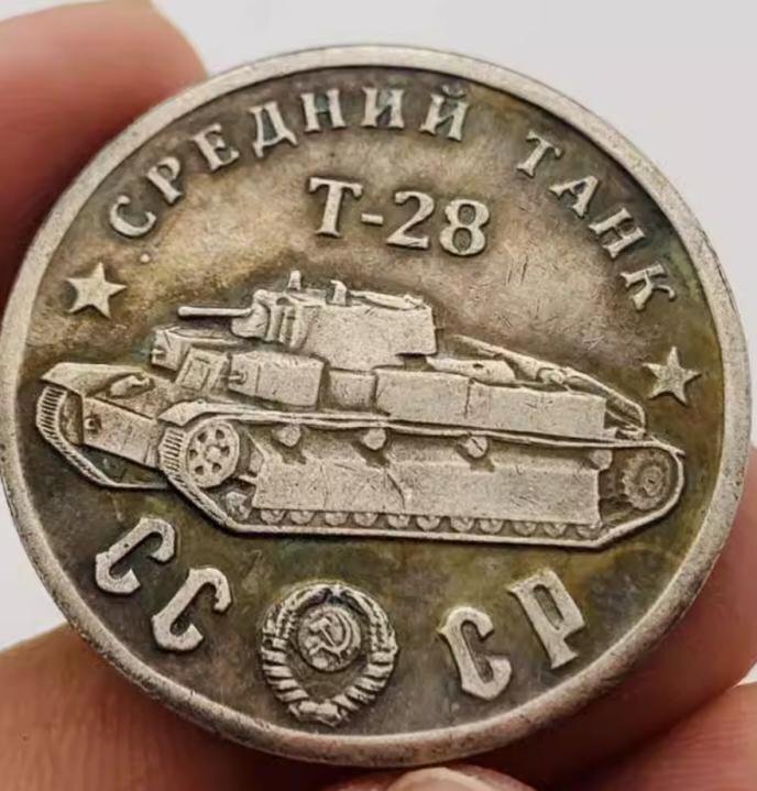 > 送料無料!ソ連戦車 1945ソ連戦車戦闘機T-28 坦克型黄銅旧銀記念メダル バッジT-28 型戦車 タンク 1枚 貨幣 外国コイン