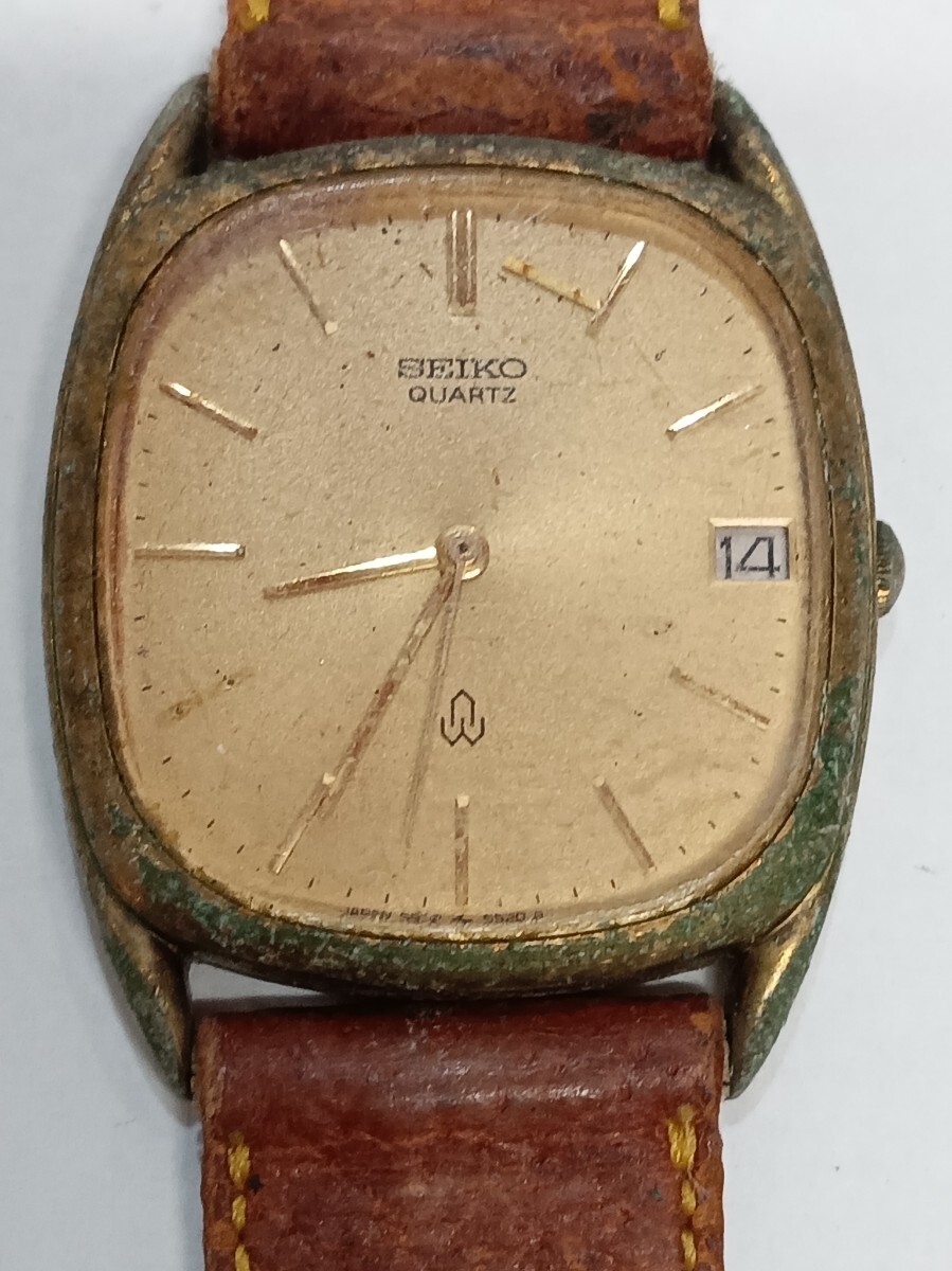 - SEIKO メンズ 腕時計 5932-5000 クォーツ ゴールド文字盤 スクエア ジャンク品 不動品