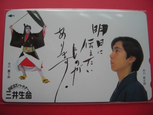 - 市川團十郎 市川新之助 三井生命 明日に伝えたい 未使用テレカ