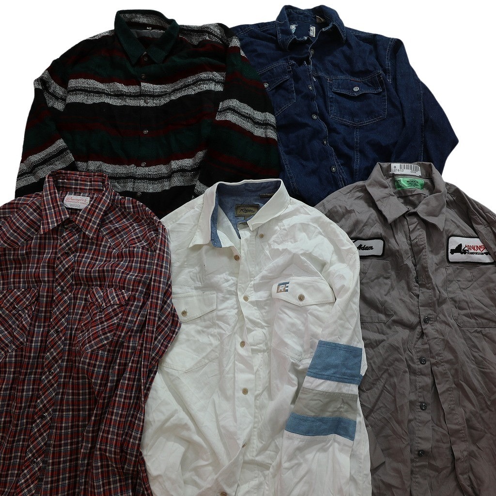 - 【訳あり】古着卸 まとめ売り 長袖シャツ MIX 23枚セット (メンズ ) デニムシャツ ワークシャツ チェック ダブルフラップ 中古 古着 WA3350