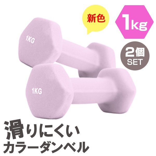 > 【2個セット/ライラック】滑りにくい カラー ダンベル 1kg 筋トレ エクササイズ 宅トレ シンプル ウエイトトレーニング ダイエット 新品