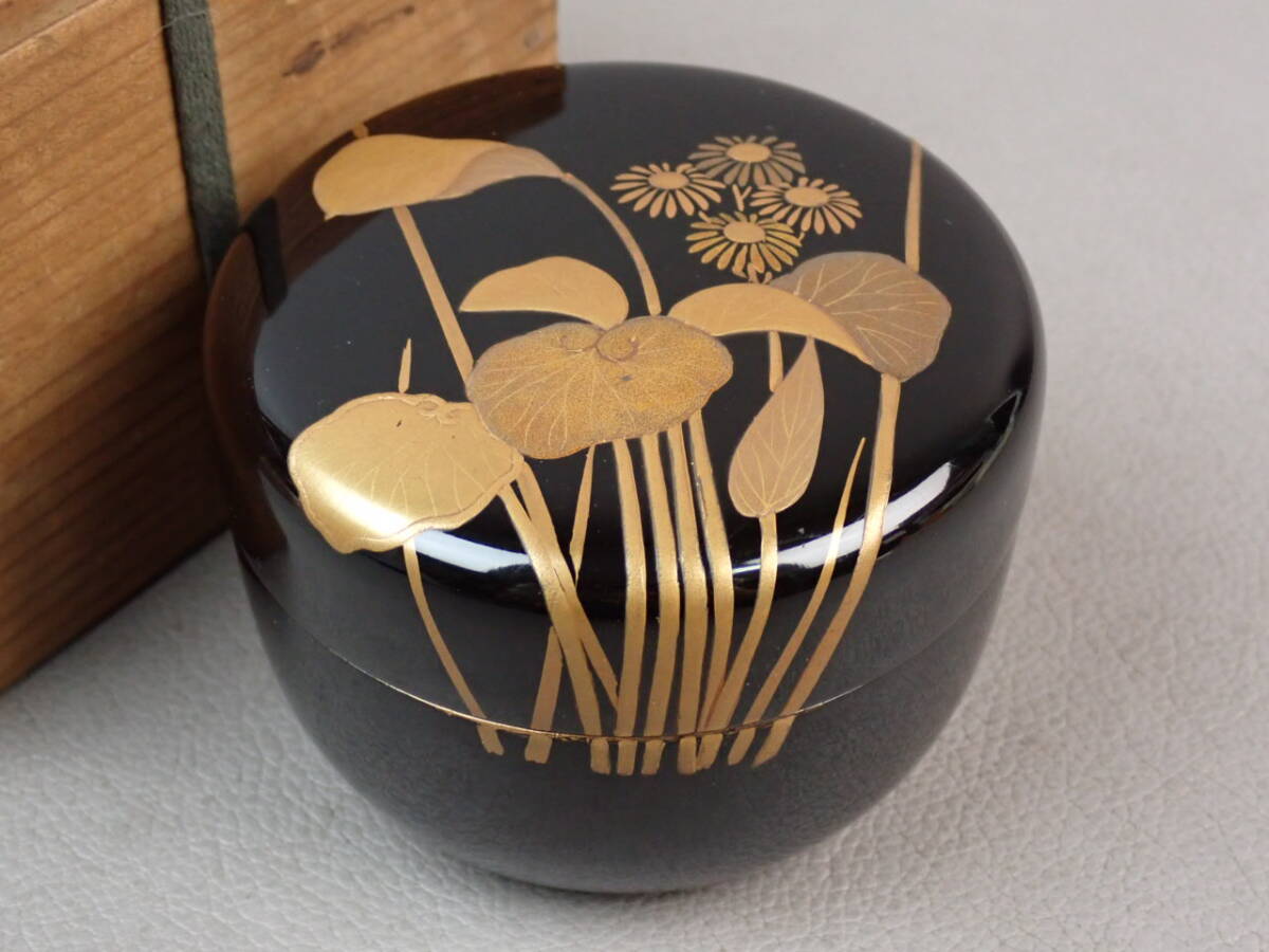 - 【骨董・茶道具】★古い 蒔絵★★葵文平棗 茶入 gp032sl 徳川家 将軍