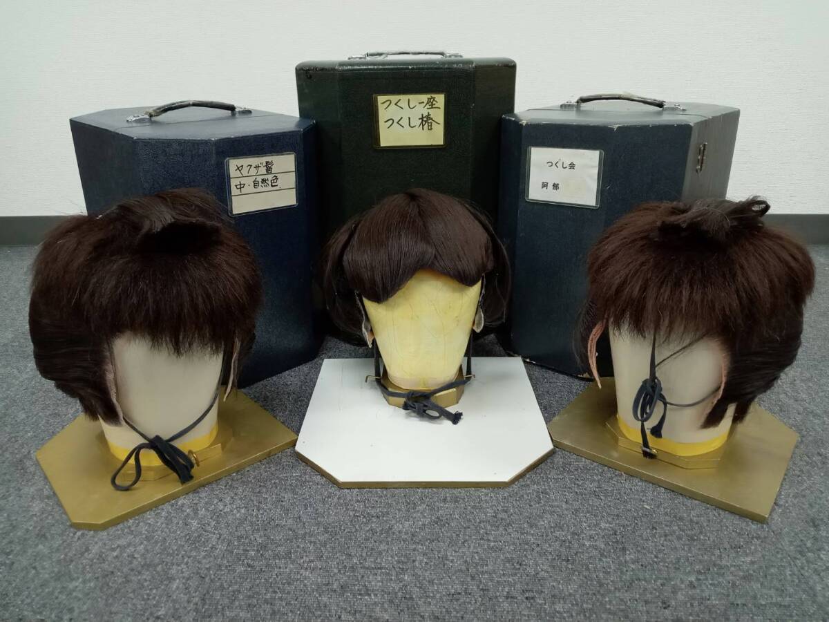 - 【3点まとめ】かつら 日本髪 演劇 時代劇 舞台 日本舞踊 小道具 和装小物 日本髪 専用 ケース付き つくし一座 1円スタート