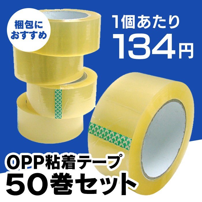 - 【50巻セット】OPPテープ 梱包テープ 幅48mm×100m 透明 引っ越し フリマ 梱包 一般梱包用 粘着テープ 透明テープ ビニール ガムテープ