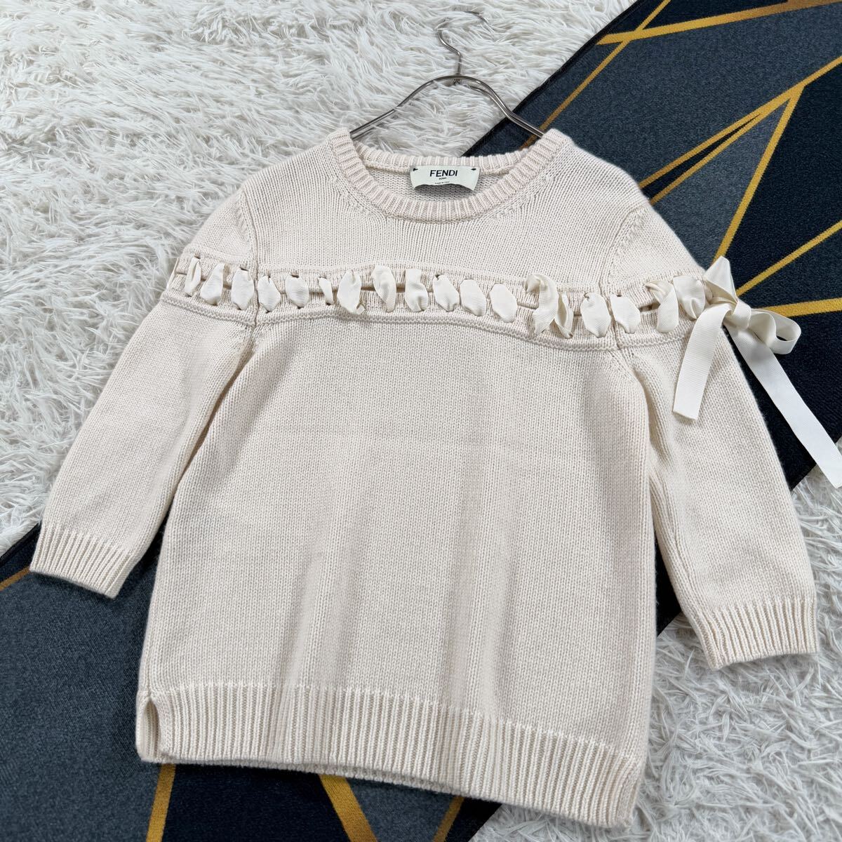 - 美品 FENDI/フェンディ ニット セーター カシミヤ100 7部袖 ベージュ トップス リボンデザイン