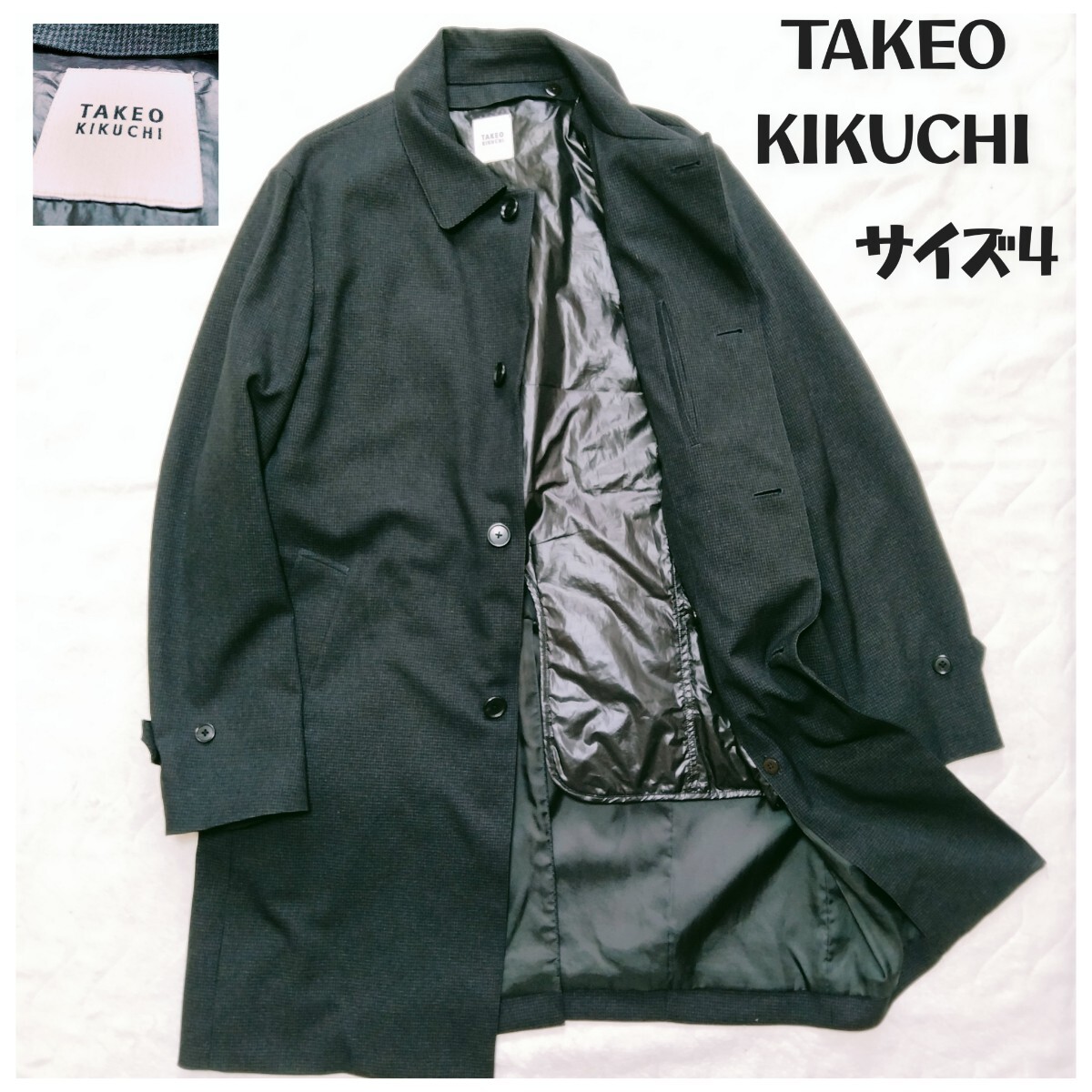 > TAKEO KIKUCHI*大きいサイズ4*ライナーダウン付きビジネスコート*千鳥格子*黒×グレー*ステンカラー*LL*XL*キクチタケオ
