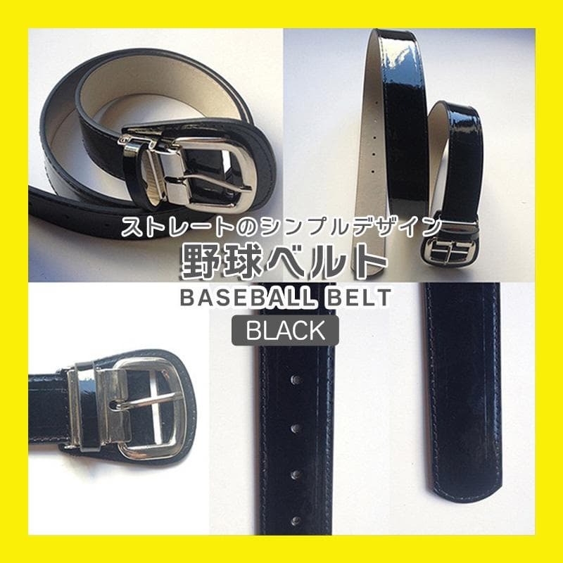 - ブラック ベルト エナメル 野球 エナメルベルト ストレートベルト 男女兼用