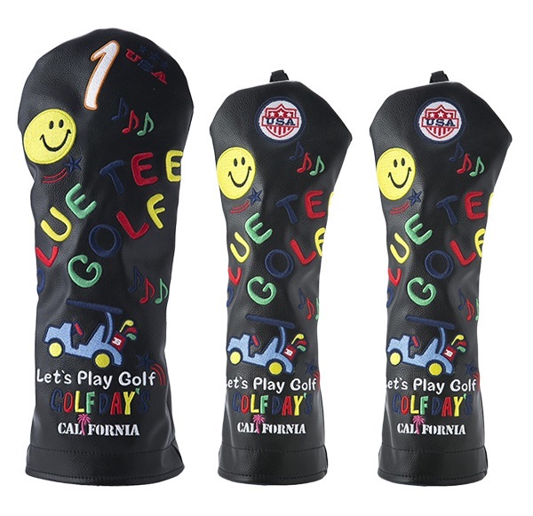 > △オークション♪【SC-3PB-ブラック】ブルーティーゴルフ【スマイル&カート】3本セット(B)ヘッドカバー 送料無料