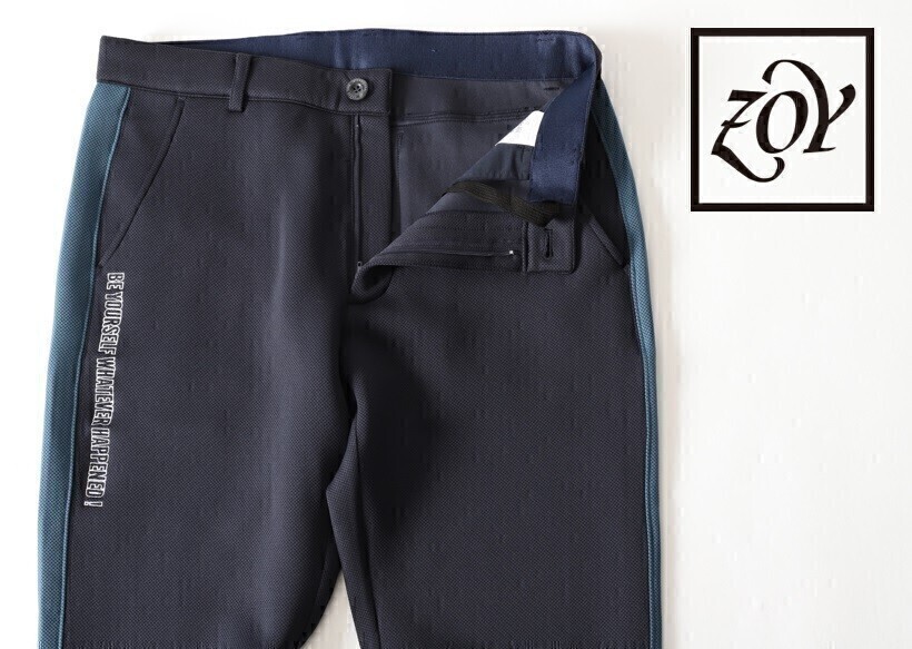 - 正規★ ZOY ゾーイ ★オックスダンボールニットロング サイドラインリブパンツ W85【071414410】ネイビー紺【本物保証】ストレッチ軽量素材