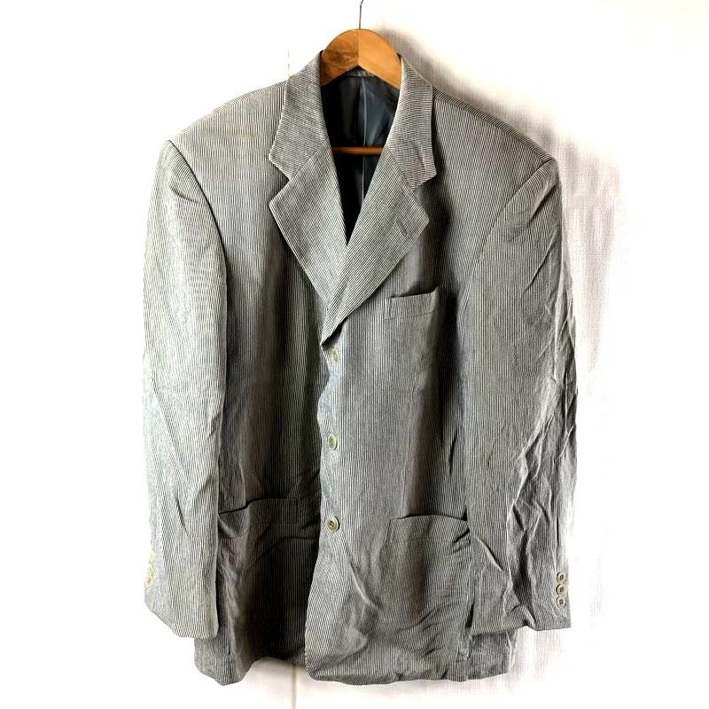 - ランバン LANVIN ジャケット ストライプ柄 内ポケット シングルボタン 肩パット グレー系 F50-36サイズ 2025090400200