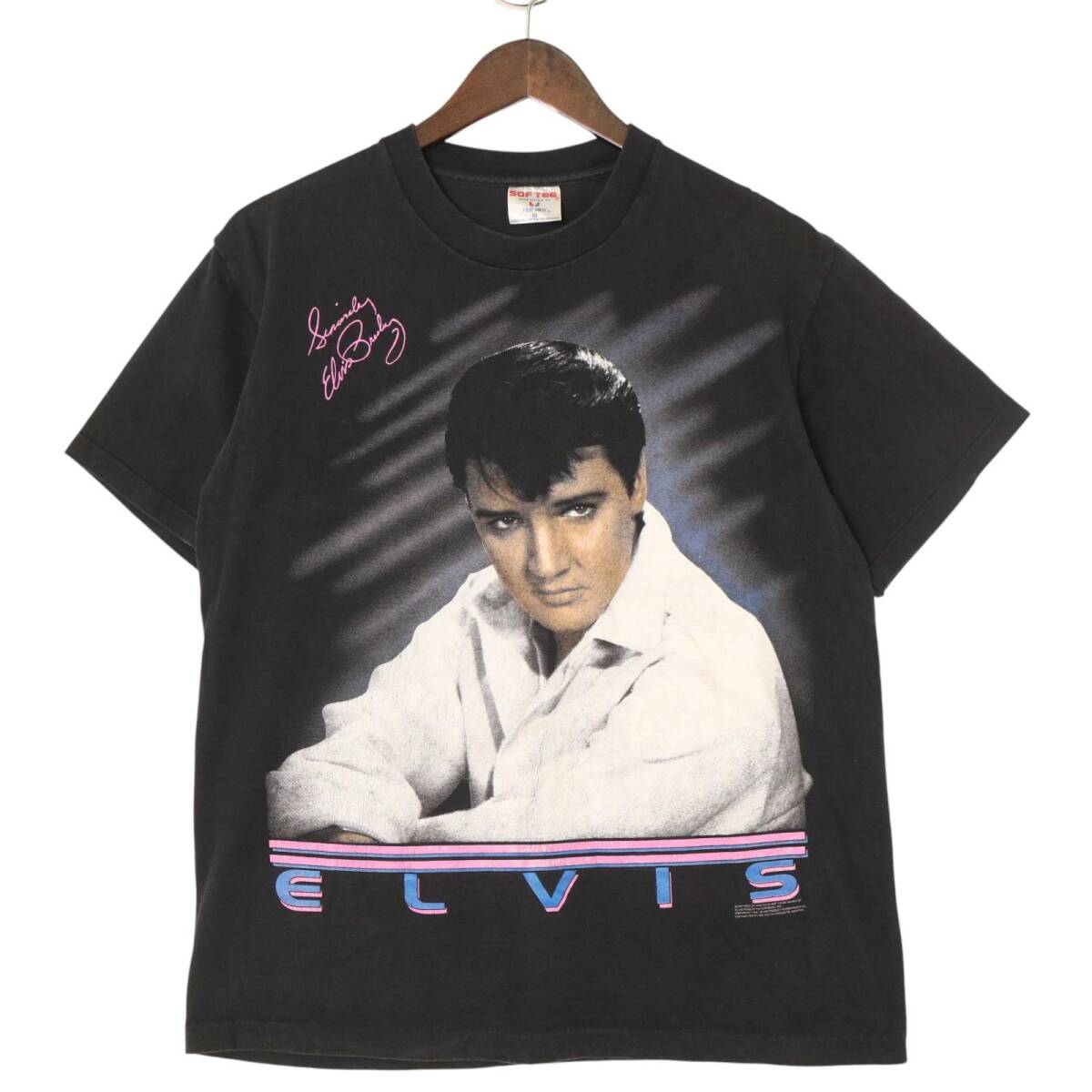> 80年代 USA製 SOF TEE ソフティー Elvis Presley エルヴィス・プレスリー 半袖Tシャツ ブラック(メンズ M)中古 古着 A5025
