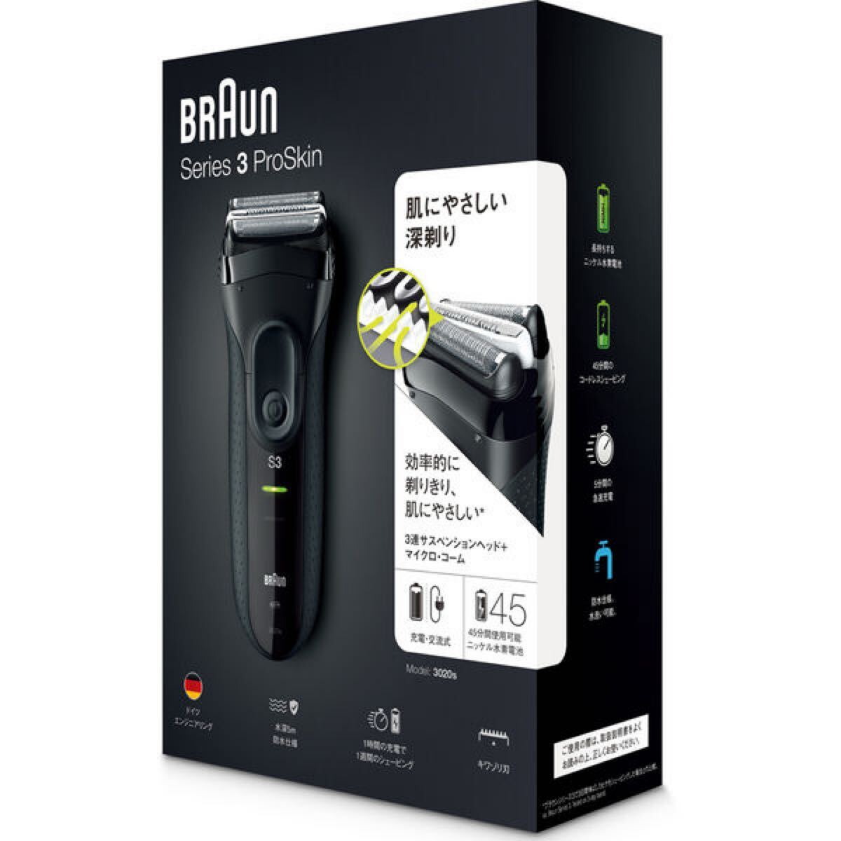 - ブラウン BRAUN メンズシェーバー シリーズ3 3枚刃 丸ごと水洗いOK 3020s-B P&G 充電式シェーバー ブラック 髭剃り Proskin 新品