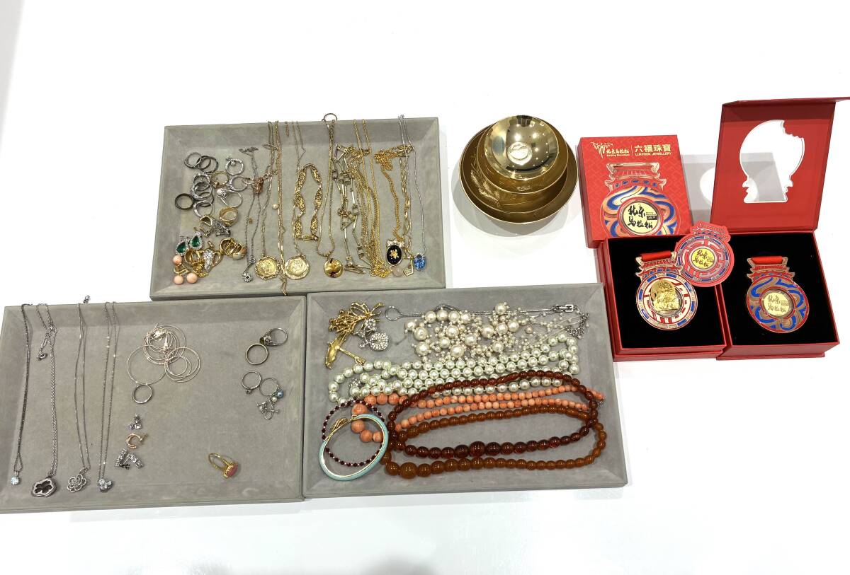 > (V4086~) メッキ シルバー アクセサリー おまとめ SILVER 925 ネックレス リング ピアス イヤリング 珊瑚 パール パーツ