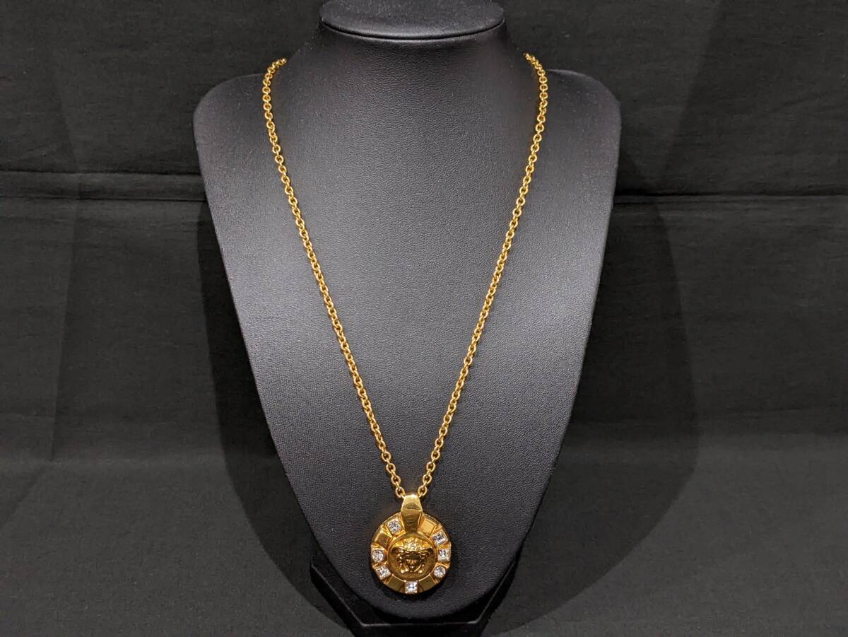 > 【67993】1円~ VERSACE ヴェルサーチ メデューサ ネックレス 約50cm ラインストーン 石付き ゴールドカラー ブランドアクセサリー